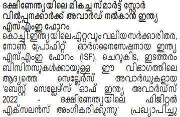 | 01-09-2022 | Kerala Vaartha | India SME Forum to award top smart store sellers in South India | View |